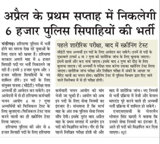 Haryana Police Vacancy Details March 2023
